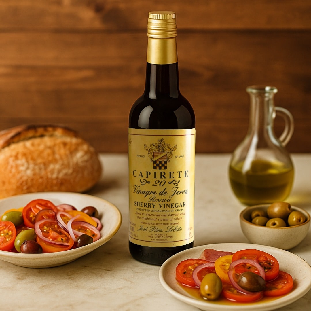 Eleva tus platos con el sabor excepcional del Vinagre de Jerez Envejecido 20 Años. Compra en línea en Ibérico Taste y disfruta de un envío rápido y fiable en todo Estados Unidos. Perfecto para mariscos, ensaladas, aderezos y gazpacho español auténtico, este vinagre es un imprescindible en tu cocina.